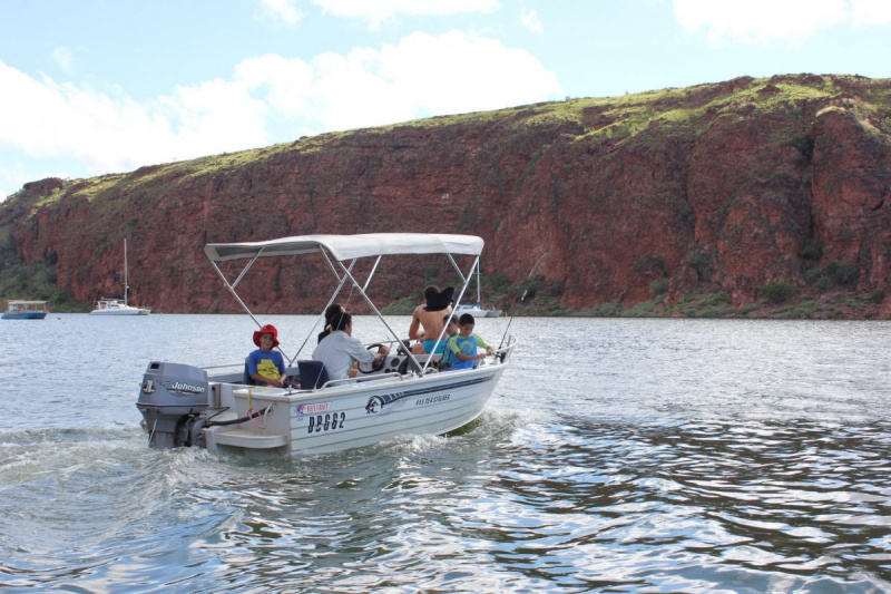 Especially when water levels are low, exercise caution when boating in Lake Argyle - the lake is full of dead trees. Many are visible but others may be lurking just below the surface. Before heading out on any adventure please consult our staff for more safety information and to purchase a chart that will help you navigate the lake.
